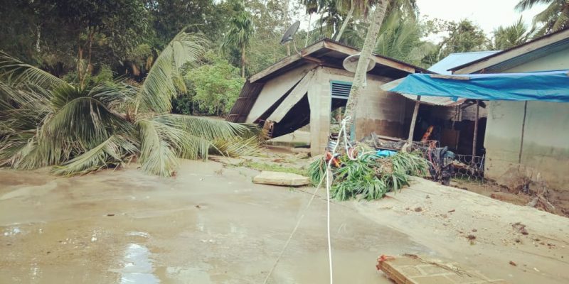 Sadarisnah juga mengakui sejumlah pohon kelapa tumbang dan bangunan rumah roboh diterjang derasnya arus banjir bandang. Menurutnya pihaknya sudah menurunkan petugas ke lapangan untuk memberikan bantuan sekaligus mendata jumlah korban banjir.