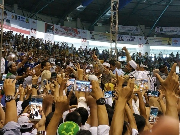 Ini bisa terlihat dari antusias pendukung Prabowo dalam menyambut Capres 02 ini di Pekanbaru Rabu (13/3/2019). Gelanggang Remaja Jalan Sudirman Pekanbaru penuh sesak sejak pagi.