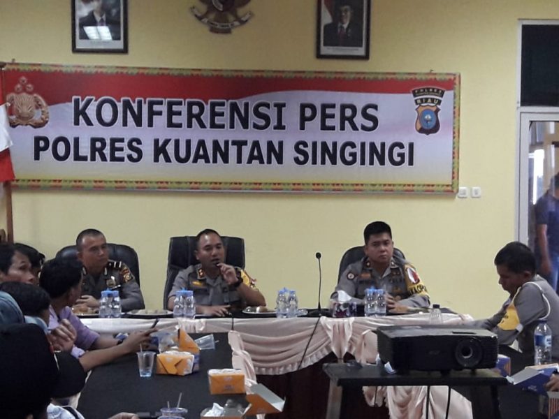 Kapolres Kuansing AKBP Mohammad Mustofa, dalam konferensi pers yang digelar di aula Mapolres Kuansing, Minggu (21/4/2019) membeberkan kronologi penangkapan hingga tewasnya korban di RSUD Telukkuantan.