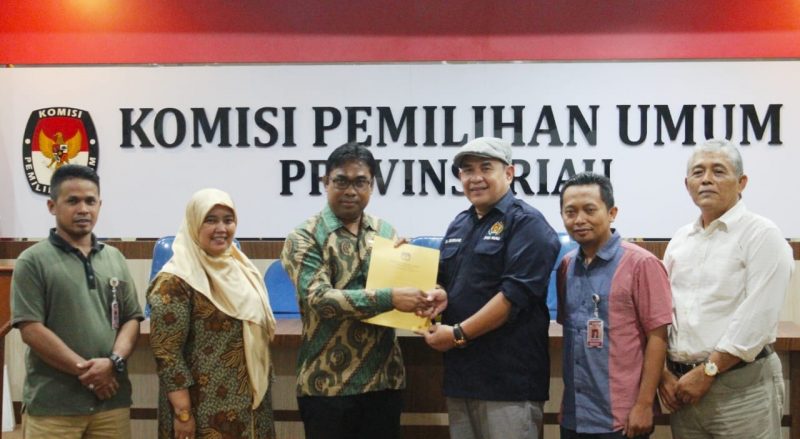 Ketua KPU Riau Ilham Muhammad Yasir SH LLM saat menerima langsung hasil penilaian tim dari Zulmansyah Sekedang menyampaikan hasil penilaian tim akan dibawa ke Jakarta untuk dinilai secara nasional.