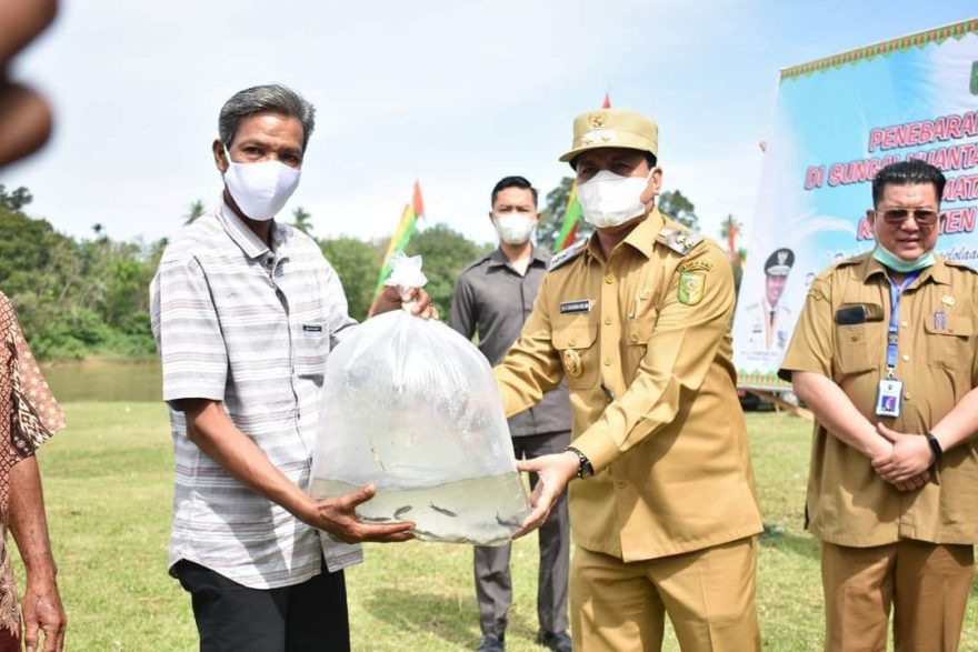 Pemerintah Tebarkan 112 Ribu Ekor Benih Ikan Baung di Sungai Kuantan