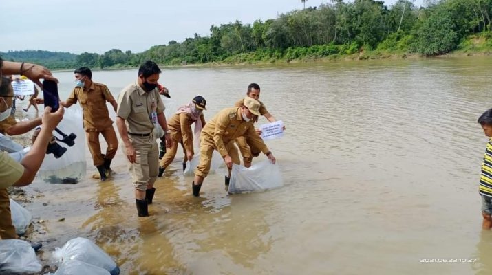 Menyikapi ini, pemerintah turun tangan. Selasa (22/6/2021) tadi, Pemerintah Kabupaten Kuantan Singingi dengan dukungan Dinas Kelautan dan Perikanan Provinsi Riau melakukan restocking atau menebar 112 ribu benih ikan baung (hemibagrus).