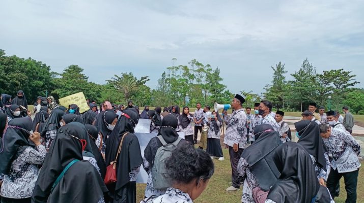 Kecewa dengan kebijakan Plt Bupati, Suhardiman Amby ini, ratusan Calon PPPK menggelar aksi unjuk rasa di lapangan upacara Pemkab Kuansing, Jumat (8/7/2022).