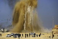 Ledakan besar terjadi akibat serangan udara Israel di bagian utara Jalur Gaza setelah mereka mengklaim ditembaki oleh HAMAS, Senin (6/2). (AFP PHOTO/MOHAMMED ABED) Warga…