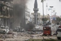 Sebuah mobil yang menabrak gerbang Hotel Dayyah, Mogadishu, Somalia meledak dan menghancurkan bangunan yang ada di sekitarnya. (Reuters/Feisal Omar) Tak lama setelah itu, terdengar…
