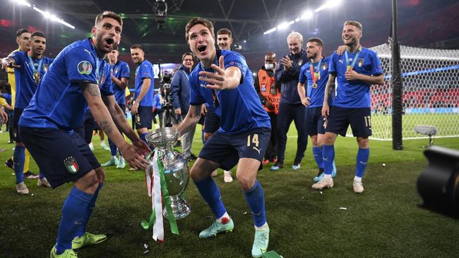 OLAHRAGA 12 Juli 202112 Juli 2021 Menunggu 53 tahun, Timnas Italia Berhasil Jadi Pemuncak Piala Euro 2020 Diposkan Oleh:KuansingKita TELUKKUANTAN (KuansingKita) – Setelah menunggu 53 tahun, Timnas Italia akhirnya berhasil menjadi pemuncak Piala Euro 2020. Dalam merebut tiket juara, Gli Azzuri melibas Timnas Baca selengkapnya